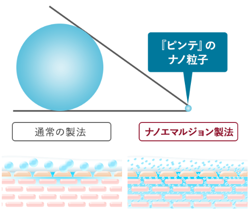 粒子をナノレベルに微細化させる技術で有効成分を肌の奥深くまで届けることに成功したとのことです。